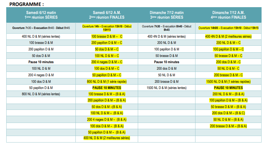 Catégorie : Nageurs Benjamin / junior / sénior ayant obtenus leur temps de qualification.